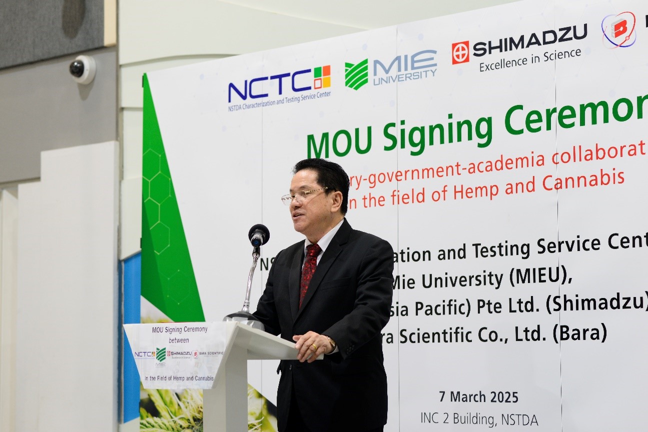 3月7日(金)タイのバンコクにある国立科学技術開発庁特性評価試験サービスセンター(以下、NCTC)内で麻・大麻分野における産官学連携に関する覚書の調印式が実施されました。本覚書は、NCTC・三重大学・株式会社島津製作所アジア拠点Shimadzu Asia Pacific(以下、SAP社)・Bara社の4者が連携することにより、大麻の高度利用、伝統・文化の継承、成分分析の国際標準化を推進することを目的として締結されました。